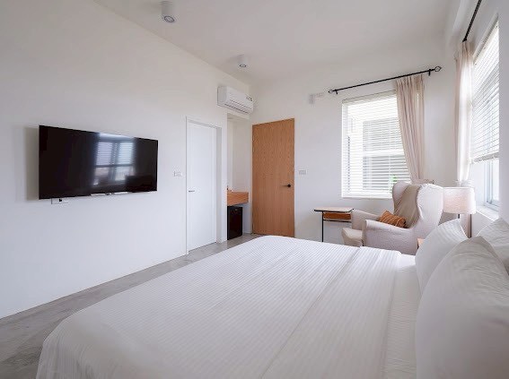 把小琉球的陽光與透亮海水,大方地請進房間裡。 以純淨的白色為基底,佐以一抹清新的海島藍,打造出視覺降溫的通透空間。早晨,讓穿透窗紗的暖陽喚醒睡意;午後,在冷氣房裡享受沁涼的寧靜。 這裡沒有多餘的喧囂,只有簡單而純粹的快樂。為了下一次的跳島冒險,我們為您準備了最充飽電的休憩空間。